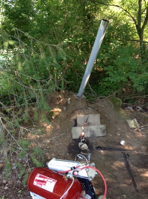Sorry about the crappy picture quality, but the point of the foundry itself was to be as cheap as possible (the only expense was the exhaust duct, $4 and not shown). It's made from a dirt mound that was once a fallen over tree. The side walls and roof are made of concrete blocks (horrible idea, I kn...