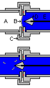 The burst disks must be dimensioned to break somewhere between half and full chamber pressure. The trigger chamber is filled to half the chamber pressure, and then the chamber is filled to full pressure. When the trigger valve is opened, one of the disks is subjected to the full chamber pressure and ruptures, in turn overloading and rupturing the second burst disk.