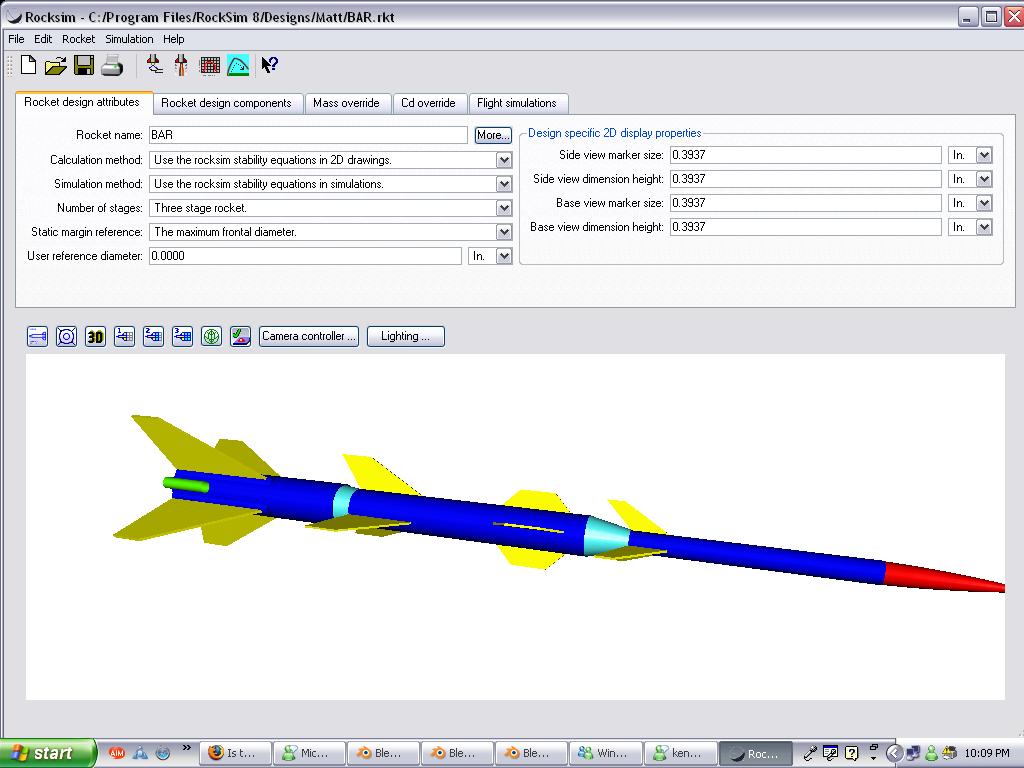 @ TurboSuper you are correct about the store bought rockets they are designed overstable so that payloads can be added and the center of gravity still be ahead of the center of pressure. But, on the stability you dont tie a string to the nose cone you tie a string around the center of gravity and swing it around your head and add weights till it stops wobbling.