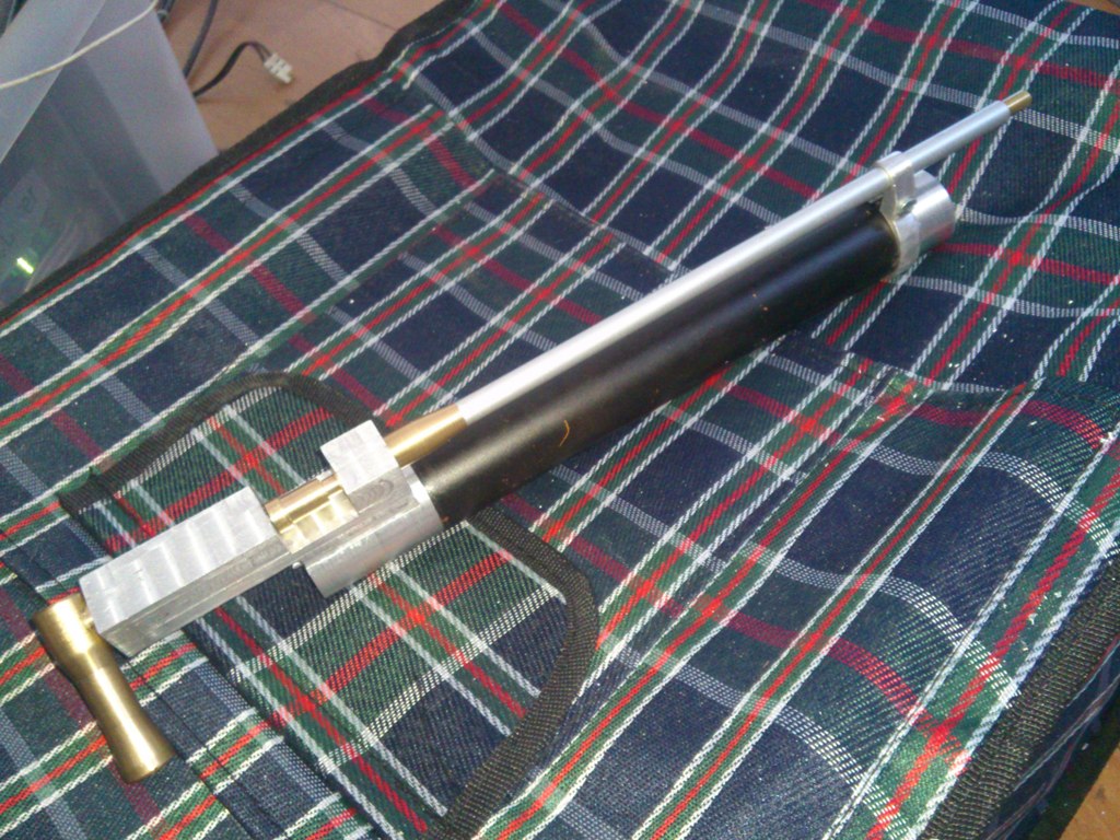Also made a kit to make 5mm lead pellets, all parts made from 32 OD aluminium cylinder, the cup for melting lead is bored out for the same cylinder, just to not wast the left overs