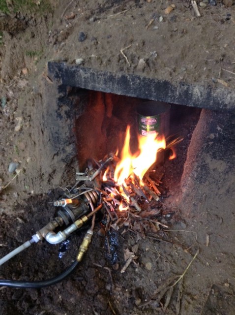 Some pictures of my super makeshift foundry and the burner in action (with heavier oils) to come