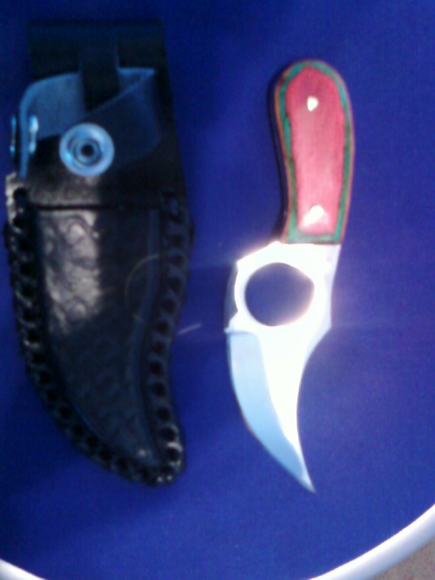 Yes, i know i am digging this thread up, so do NOT get at me for that shit, ive been around here long enough to know about that. just hate to see a good thread like this die. I have a couple knives, but this one is my favorite, i picked it up at a local swap meet yesterday, and i love it. i mainly love the multicolored wood grips. blade is VERY sharp(after i sharpened it more), and feels very nice in my hand. i carry this on me every day. I plan on buying a cold steel spartan in the future.