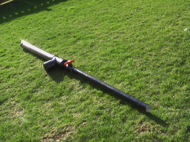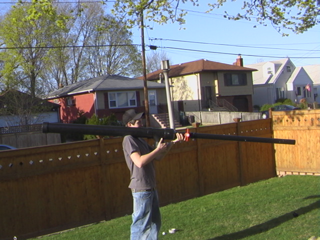 On that note, with the right barrel, and the sprinkler valve, i can shoot golf balls through a 2x4 easily with one of my cannons thats not too much larger than yours 8) (just thought i'd give an example of how great a couple little upgrades can make a cannon!)