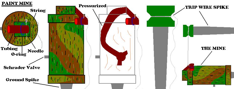 Well guys, sorry to let you down. Been very busy lately with play rehearsals, and when I'm not at school, wrestling practice, or the gym, I have to try and make time for my friends (who all seem quite neglected). However, with the holiday season upon us and break almost here, I may be able to do most of the work over the holiday season. I have updated the plans to include a Schrader valve (for safety, letting excess pressure out instead of exploding) and a pressure gauge( to see just how many shots I have left. So, not having anything else to ask you, I would like your opinions on a small project I'm working that is quite far removed from most Spudguns. This being *cues drum roll* TRIP MINES AND TANKS!!! You guys caught me starting out on a very dumb school project known as "The Senior Project". Basically, you research and do what ever you want, but you have to have mentors to help you along the way (by the way, thanks Judgment_Arms). So, my idea was to make a bunch of paintball exotic weaponry that not many see too often. So, while you continue to help me out on this front, I would also like your input on the other facets of the project.