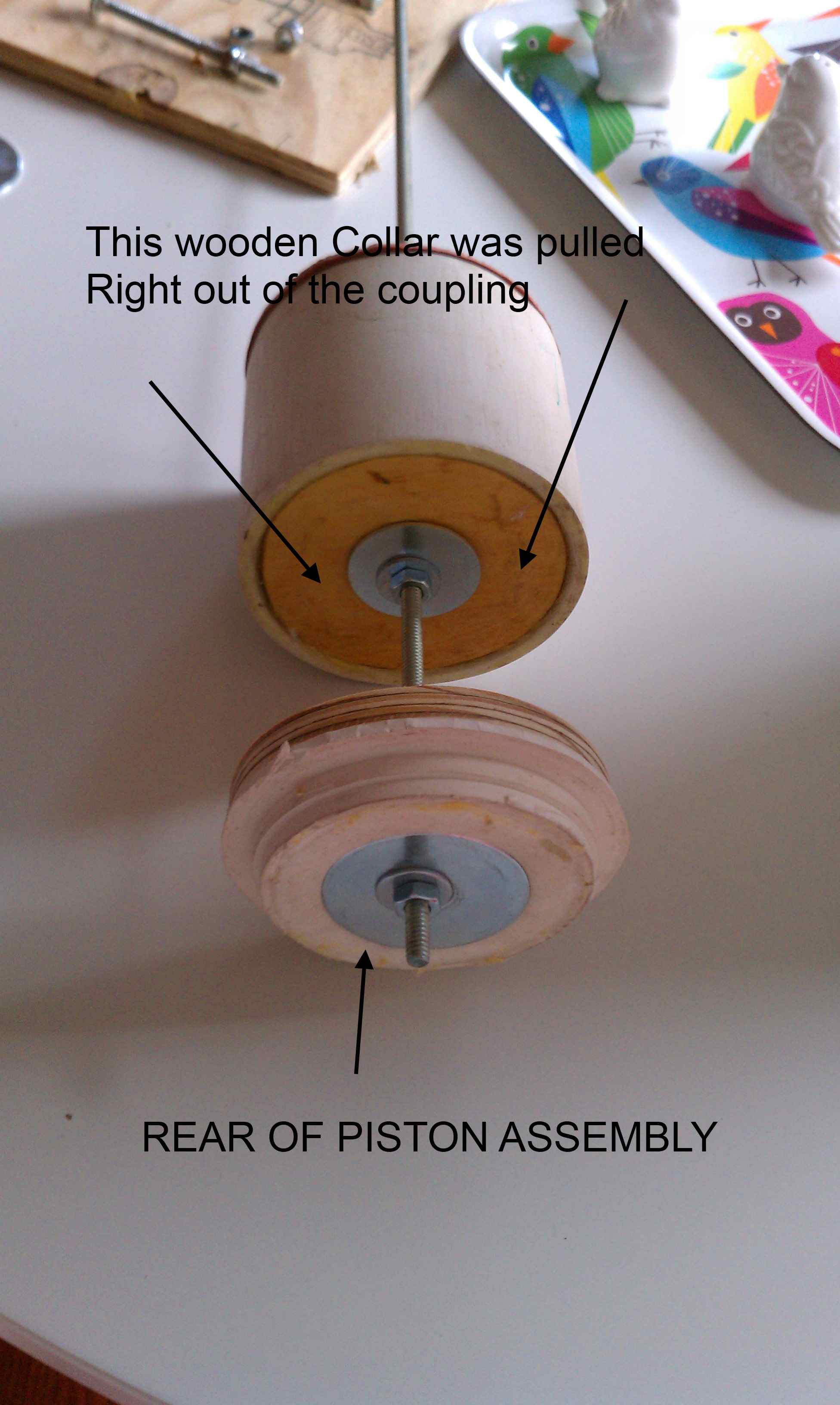 Cant decide if I want to fashion the new piston from 1 large block of wood (a cylinder cut and sanded from a 2X4 or several pieces of plywood ? Guessing would be about the same strength. Difference would be workload and weight.