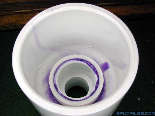 - This glue joint must be done properly, with a good quality PVC primer and glue, and given sufficient time (a day or two) to set as it is holding a significant amount of pressure (both the pressurized air and the tension on the seal between the bottle and the washer) with relatively little surface area. The consequences of a failed joint could be a pop bottle launched at considerable velocity.