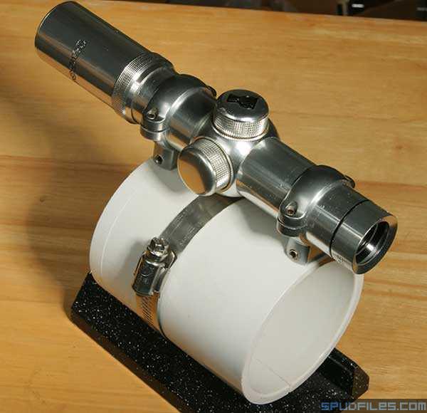 - This is an optional part, the launcher can be instinctively aimed with sufficient accuracy without a sight. The scope I used is a Tasco Trophy 30mm 2X handgun scope with a dot reticle which gives sufficient eye relief when mounted at the end of the barrel. I'm told the scope rings are also from Tasco, but they do not appear to be in current production.