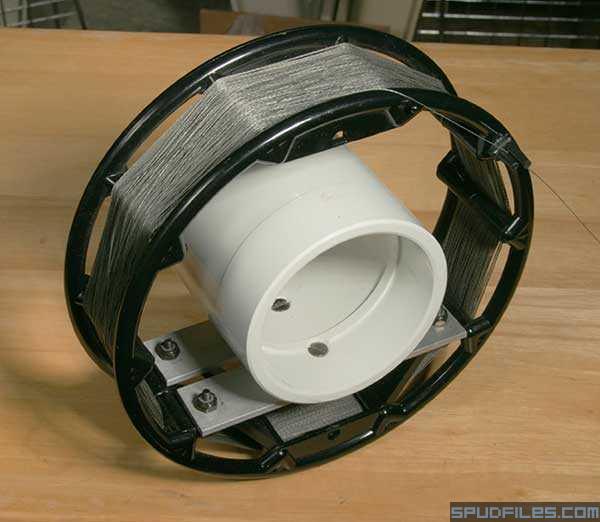 The hardware attaching the bars to the coupler are flat head machine screws, and a countersink is cut in the inside of the coupler for each screw head in order to recess it below the surface of the plastic. The coupler is simply friction mounted on the muzzle of the launcher, allowing it to be removed for reeling the line back in. This type of mount also works well for fishing reels if you prefer them. - reel_coupler.jpg (14.42 KiB) Viewed 15324 times