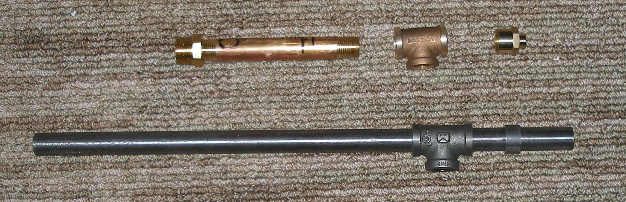 The first pic shows the new pistol length barrel made from 1/2" brass nipples sleeved in 8" of 3/4" rigid copper "M" size. The use of short "modules" helps with the "keeping the ball from rolling forward or back" problem. The sliding loading port seal is a no-stop copper sleeve. I actually made one from a sharkbite push on connector, but that is a discussion for another day.