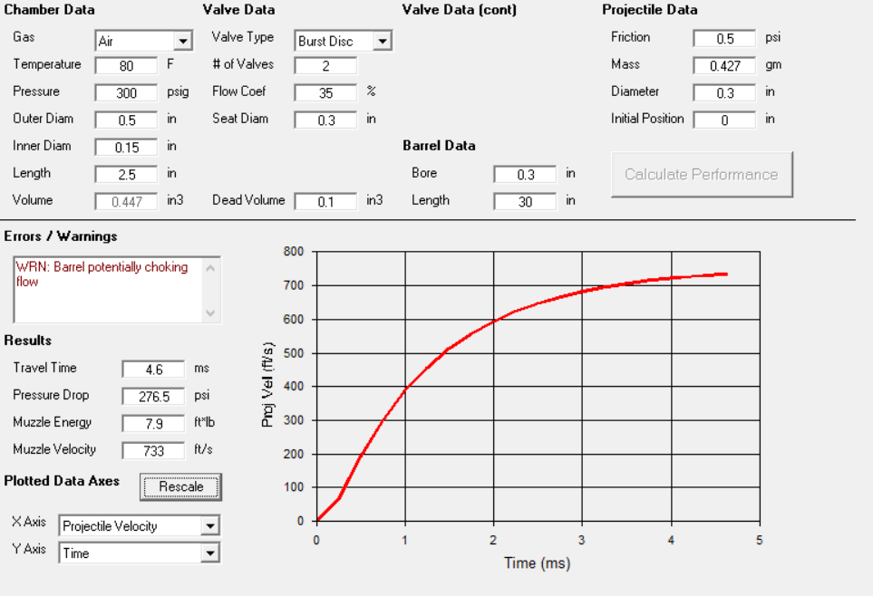 An empty CO2 capsule averages at around 30 grams, so muzzle energy for those first tests at 2500 psi was in the 45 ft lbs range.