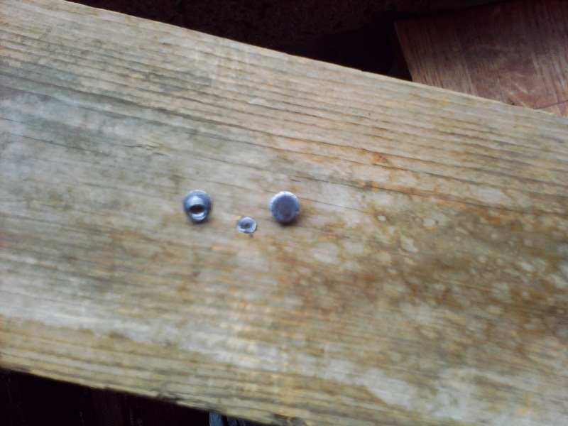 I changed the barrel with 5.5 mm from Hatsan AT44. I was planning to buy 6.25, but i found this one for a very good price. Then i had to change the whole receiver to fit the new barrel. I replaced the ugly safety valve with a Male/Female Extension Nipple and a thick threaded tube soldered together. In the nipple I installed the valve. First I wanted it to be movable and sealed with o-rings but I couldn't put it in without breaking the o-rings when they pass trough the thread of the nipple, so I glued it with polyester resin, but still it leaks a bit. Now all looks a bit more solid and clean (not much but still better than the last version :D ). I also replaced my air tank with 4 extention nipples , because the old one was leaking. I now have a manometer on my pump. I pump the gun to 12 bars ( I dont want to risk higher preassure because my check valve is self made and it can send the handle in my jaw :D ) with this preasure the gun is pretty weak but still it penetrates pine board till the pellet is fully in as you can see on the picture. The other 2 squashed pellets were shot at army helmet from 1 m distance. Can't tell how accurate it is because i dont have sights for now. With 1 fill it gets 5-6 good shots, but after 4-5 fills in a row my hands get tired and i cant shoot accurate so im looking for a compressor.