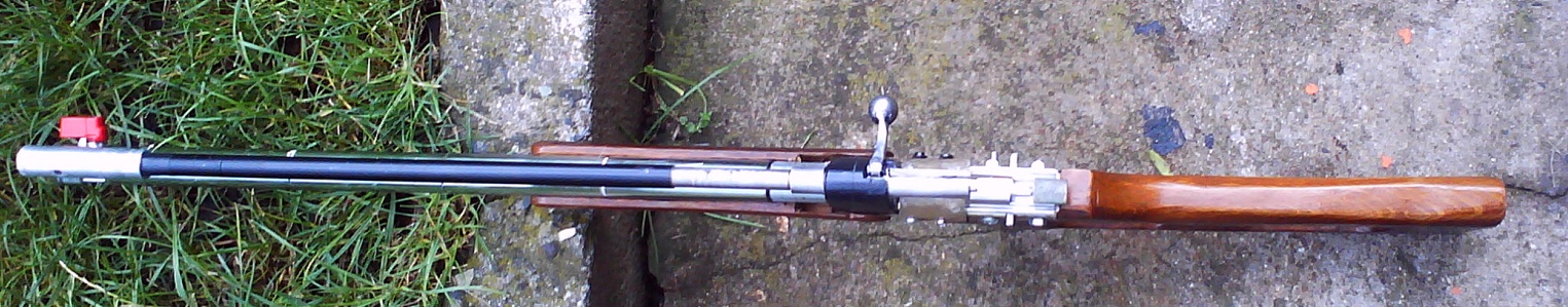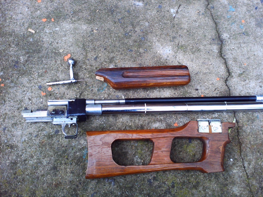 Hello again, its time for the third upgrade of my rifle. Now it has 200 bar air tank, new trigger and everything is fixed with screws - no more resin or soldering. Its much more powerful now , but also very loud. It weights 3 kg , 80 cm. long. The air tank is from hatsan at44 180cubic centimeters. I wanted the trigger to be in front of the sear so i used http://www.enfield-rifles.com/uploads/2 ... rigger.jpg this.