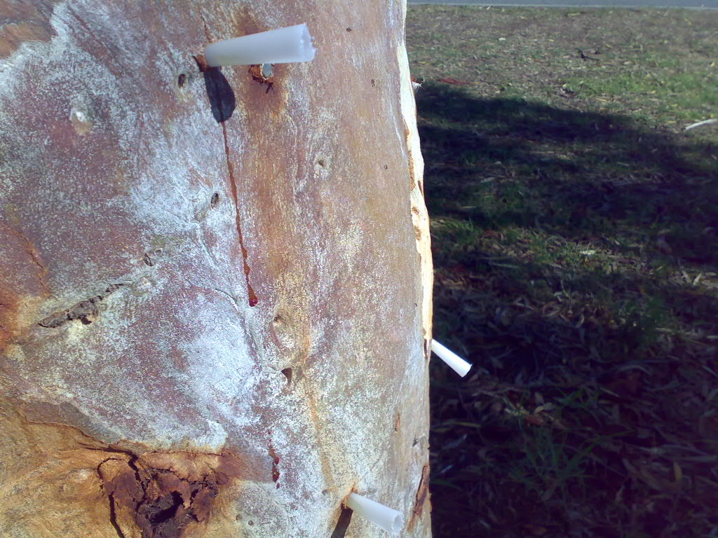 The first lot are of the darts in a tree i fire at from about 45m away. As you can see, they TOTALLY embed themselves, and we are talking 3 and a half inches here folks into the rather tough exterior of this old eucalyptus.