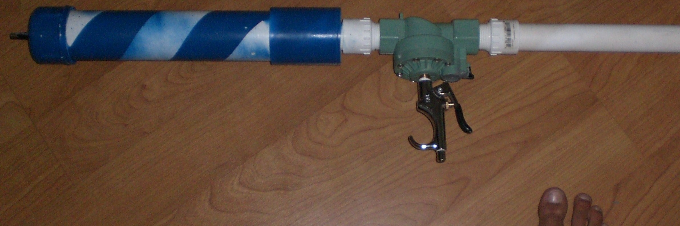 I love these kinds of cannons. I have the exact same thing but with a 3/4 inch by 5 foot barrel. So simple, yet so powerful. It puts wholes straight through 3/4 inch plywood and the fence behind it at 120 psi.