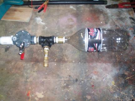 (sch80 equivelent),now how i connected the coke bottle..this is a little crazy and stupid,but its only ever failed on me once and that was when i was using ball valves,but still i ran 90-100psi.first off all it is a 3/4 female nipple which i screw the bottle into its standard threads,but i use a rasp and file back the thread ont the bottle of the coke bottle till its a near fit but still tight,then i cover it in about 20layers of sealing tape and jus screw it into the threads it start off easy but if u did it right the thread bites into the bottle and then i get some vice grips and screw the bottle in as far as it can go.and then test for leaks,and unscrew and add more tape if needed and when its unscrewed you can see the thread made by the brass fittings.