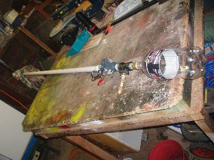 Well anyway i made this cannon today out of parts of other cannons except i had to buy the barrel,which is 1.5meters of 1inch class 12 pipe(equivalent to sch 40)i use a modded sprinkler valve which i had to offset the 1/4inch nipple as it is a guide rod modle valve.The chamber is made of a 1inch to 3/4 reducer and tee where i have a female air compressore fitting to air the chamber.The actual chamber consists of a 2letre coke bottle which i run at 90psi regularly.