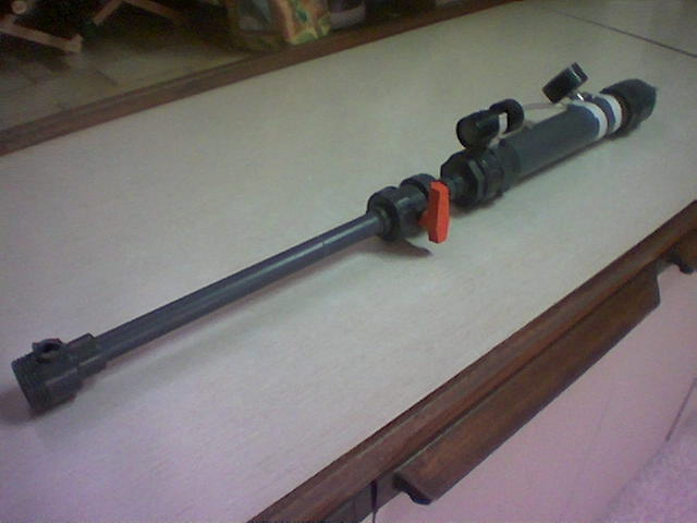 My latest creation, a very basic pneumatic rifle with a couple of add-ons.