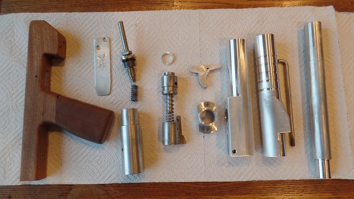 a lot of things changed throughout the build process. feed neck was added. barrel is clamped into place etc. but the basic mechanism remains the same. if you want to find out more about how the mechanism works, try googling "nelson valve animation". and yes, as you may have guessed, this is a nelson valve based pump action. all measurements are in decimal-inch form. any measurements left out of the diagrams are because i knew id have to be flexible to some degree, regarding tooling and available materials