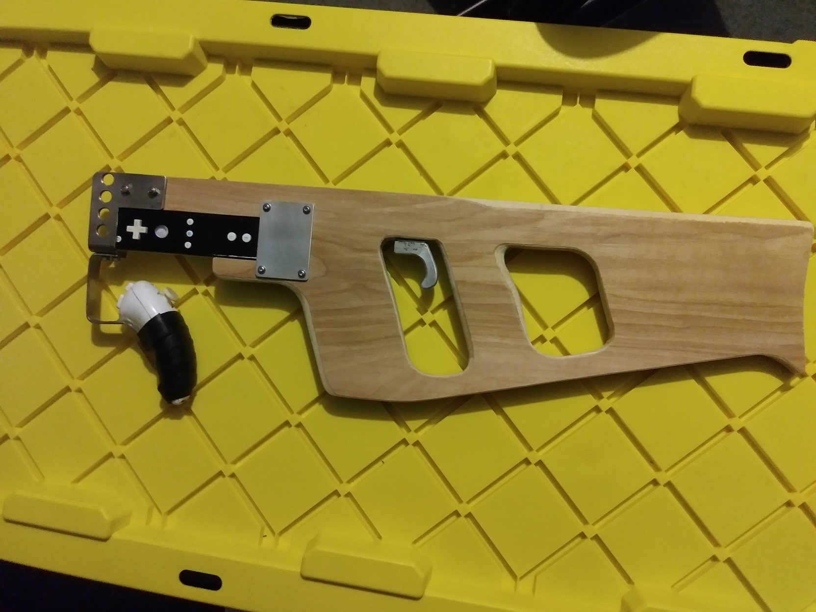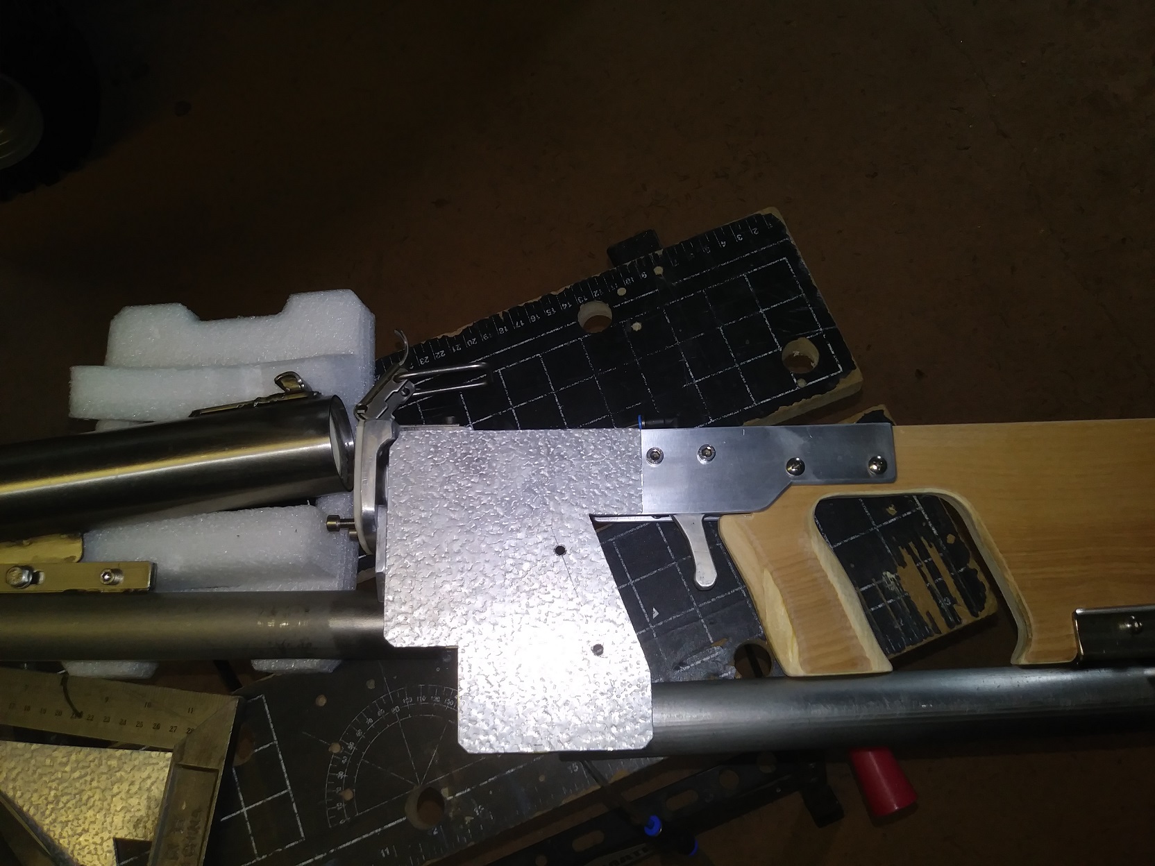 First fitting of the stock, it is actually the MkI Wii light gun stock that I kept just in case, fits perfectly, just need to reshape the top aluminium brackets.