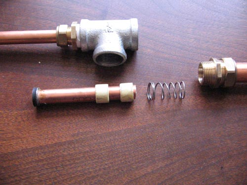 I needed to extend the Tee towards the excaust valve to get it to slide and seal properly.And to not get it "drop"into the bottom section of the Tee..Go fairly large on the fittings (1.5" ) because the piston will slide inside the extension wich has a smaller diameter than the Tee.( the galvanised fittings I have are bigger inside than at the threads so I can't get a piston in there).If you can,dremel out the welding seam.