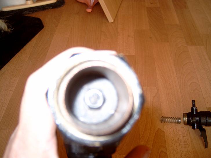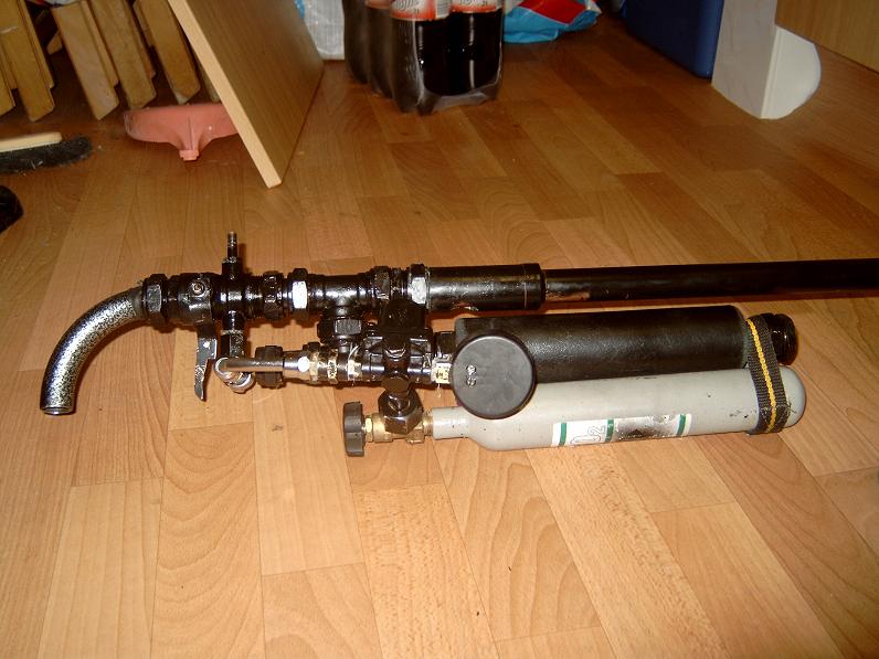 And I shortened the piston housing to get a smaller pilot volume.The gasflow from the regulator can be turned off via a nice chrome valve.I do so to ensure the entire CO2 bottle doesn't become part of the pilot volume.( bit hard to excaust quickly