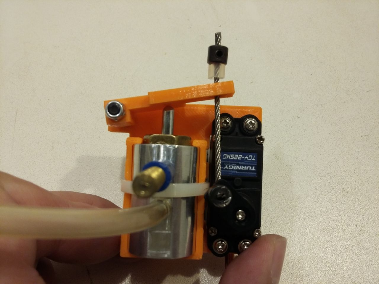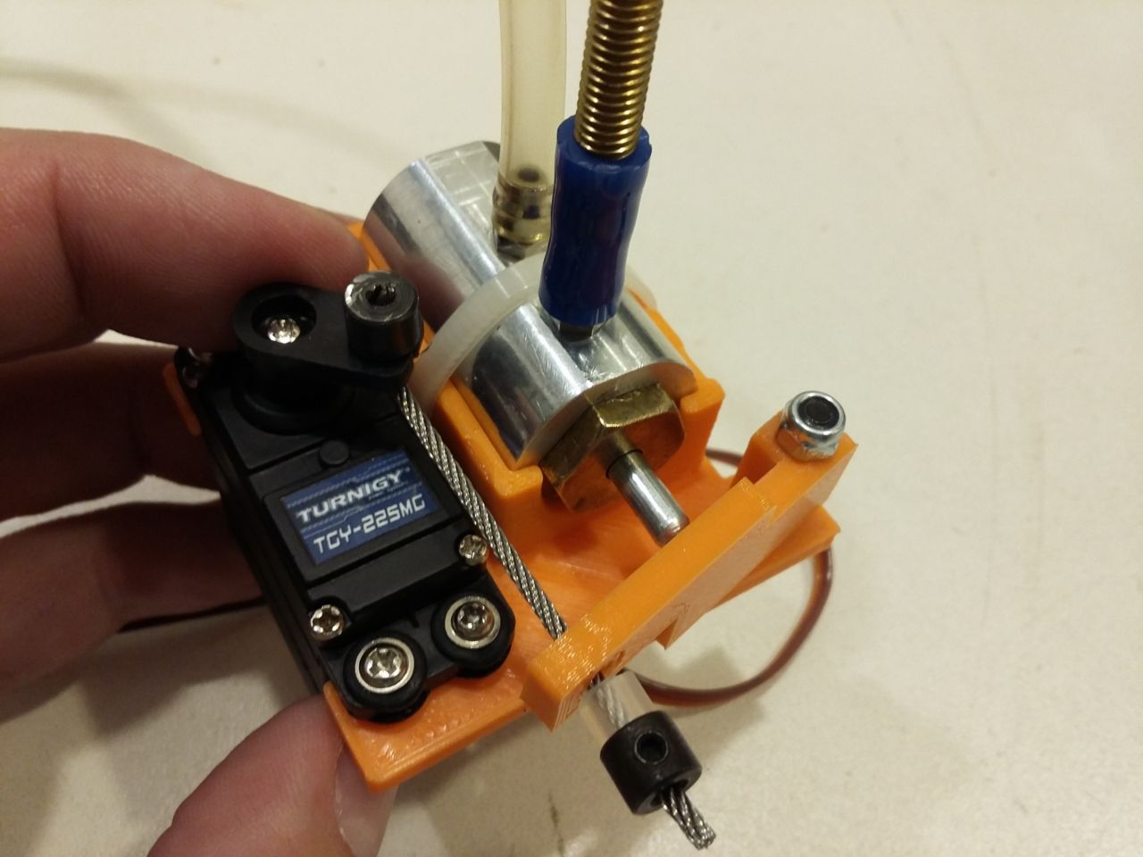 I need to build a propane valve that can be actuated by an RC servo. This means that the range of travel of the controlling surface is limited and the force needed to open and close the valve should be low.
