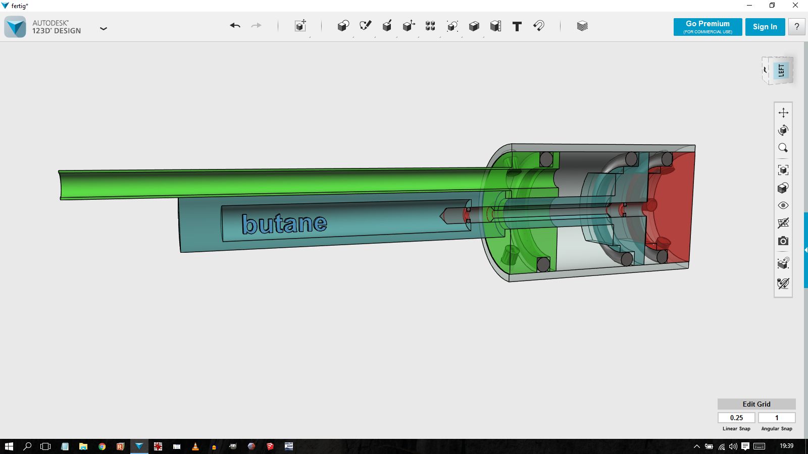 1. The blue one is the moving part. Built of butane reservoir, outer part of the meter and a piston (with one-way-oring).