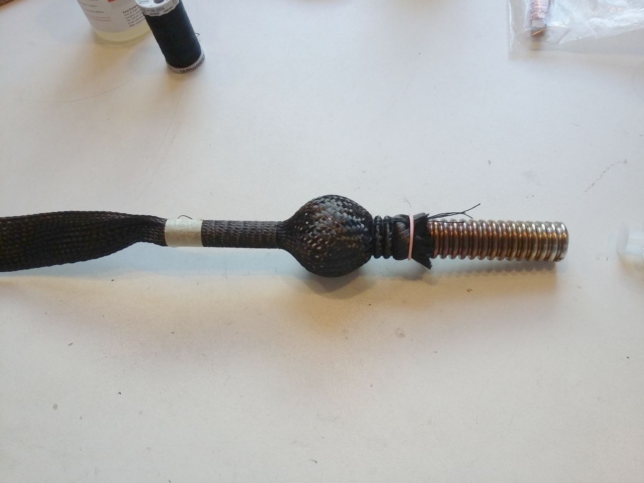 Then it suddenly came to me. Carbon fiber! Lots of people make fiberglass stuff for RC planes, carbon fiber is not any different in manufacturing methods, only a different material which gives a more stiff product. I even have a guy at the club making fiberglass fuel tanks for RC jets, he gave me some hints, and I found some braided carbon fiber sleeve which would be easy to work with, and I found some affordable high temp epoxy resin. Resin has arrived, but not the carbon fiber, so I won't be making any real stuff from it before next weekend.