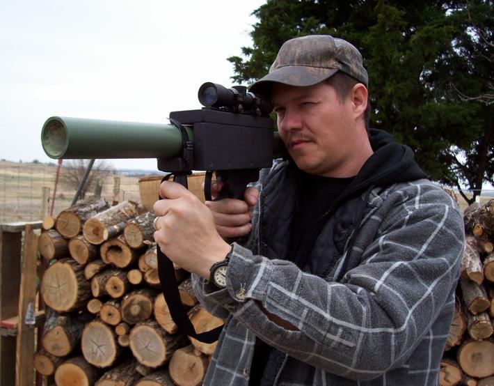 The scope is not really usable on a gun like this as alot of you know, mostly for looks. I use 10" long 1" diameter pvc rockets with flared bottom and bondo plug at the top, also i made a couple tips out of wood dowel sanded down. shot it 300 feet today a couple times using axe, limited range due to neighbors house.