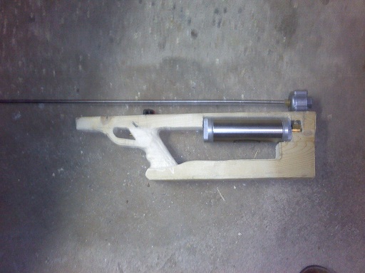 Here is my qev airsoft gun. The stock needs a lot of work and the whole thing needs a paint job. I still plan on putting a 1/2 inch pvc pipe over the barrel so that i can mount it to the stock better and have a better base for attachments. It's muzzle loading right now, but i plan on putting a spring loaded clip of some kind along the bottom and a detent. just thought i show you guys for some input before i go all out a finish it tomorrow