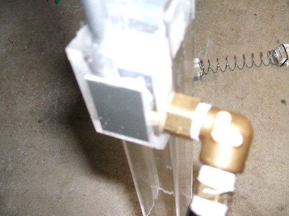 This thing is simply amazing. It empties itself in about 2 seconds (~250 rounds). The concept for this gun is totally new, as you may have seen from my sig. The body is square acrylic tubing (sweet!) and the vortex block is flat on it's side, below the gun. This is the second "full hole" vortex block I've made, because a partial hole wouldnh't work well for this gun. The bottom of the vortex hole is covered with aluminum sheet. The front is plugged with an acrylic cube. Another acrylic cube (thanks Modder) is the plunger, while another acrylic cube, with an O-ring on it, serves as the back plug. The O-ring doesn't completely seal the back, but the gun still shoots better than any other strafer I've ever made (keep in mind, that's 8 or 9). The blowgun is attached to the vortex block by a compression elbow, a tiny piece of 1/4" brakeline, and a drop of epoxy.