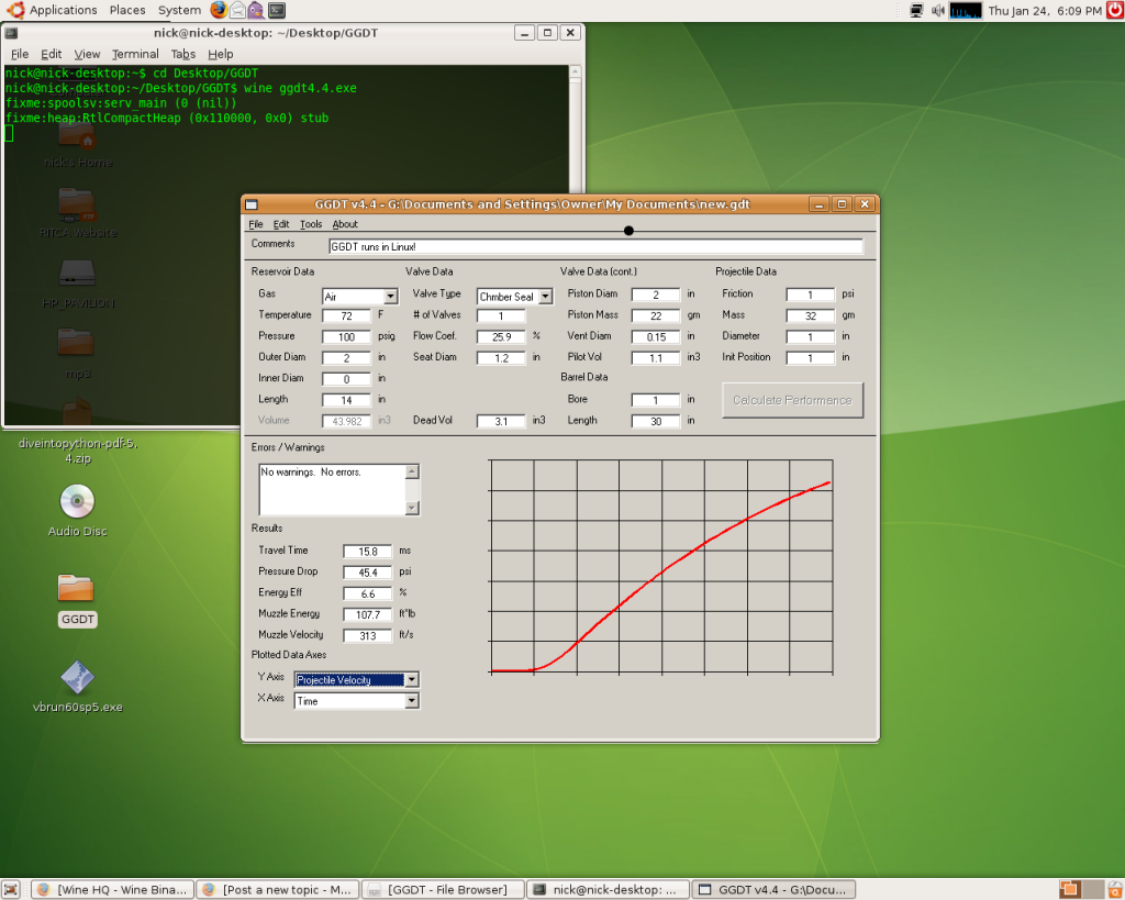6) Once you have ggdt4.4.exe and the two .OCX files in the same directory, you should be ready to fire it up. In a terminal, navigate to the GGDT directory and type "wine ggdt4.4.exe". Hopefully, you will now be running the program.