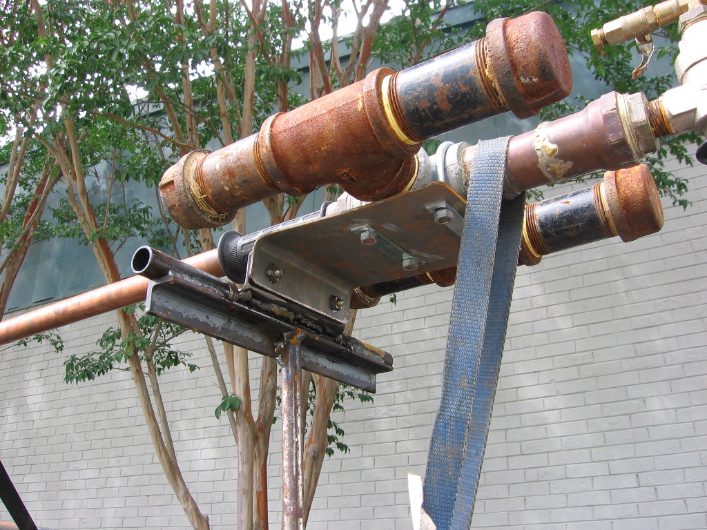 Seriously though, I made a mount for the Decimater so that I could use DD1's tripod for it... It has 360degree rotation and aproxximately 75degrees +/- elevation(150total)... I'm going to a friends this eve to do some "exhibiting" so I strapped it in the truck "rat patrol" style and drove to work...  Hopefully, this stand will make the recoil a lil' more manageable...