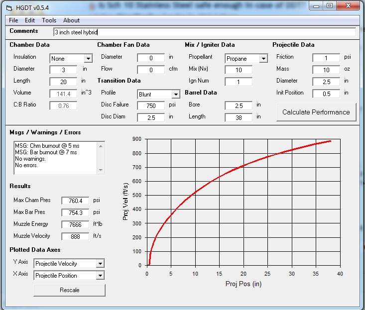 As you can see, without the need for a chamber fan (pressurizing the system agitates the mixture in and of itself) you're already at ridiculous power levels, well beyond .338 Lapua Magnum.