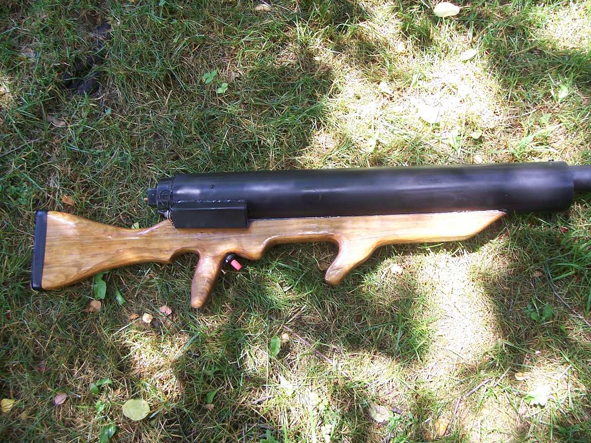 Nice gun, that's one of the few combustions I've seen with a stock. They kick more than pneumatics so most people don't really bother with a stock.