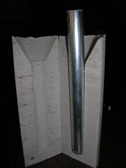 Well I've been tinkering around with ideas for my combustion cannon, and so far I have this... Its just a plaster of paris sabot and steel rod... The plaster is still a tad bit heavier than I'd like to see, so I'm going to try a Pykrete type mixture with the plaster by adding either styrofoam or sawdust. The steel rod will of course be sharpened to a point on my final product when I go to test it...