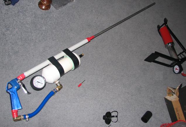 The pic is fairly self explanatory, the barrel is approx 7.5mm ID, and fits nicely in the blowgun, some of the barrel is sleeved with 20mm pipe, heated up to slide over the outside of the blowgun. I Run this gun at around 90-120PSI.