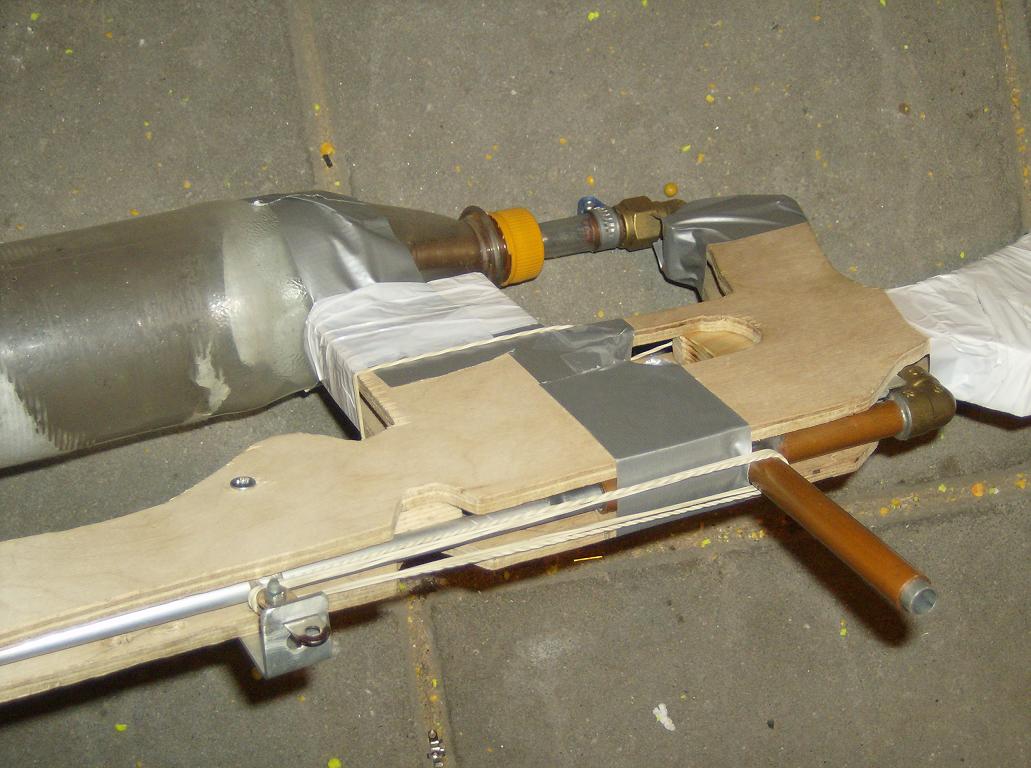 This homemade gun shoots 0.12gram bb balls at around 280miles/h. (450km/h) It works on a 1.5 liter coke bottle at 5bar operating pressure. It can shoot about 40 times on this bottle. It also has a gravity fed magazine. I also have a system to make sure that the balls dont roll out of the barrel and that there are no double feeds. At the moment I am working on a automatic airsoft gun which recocks on the pressure of the bottle as well; just like an uzi. So inother words this gun still needs to be recocked manually.