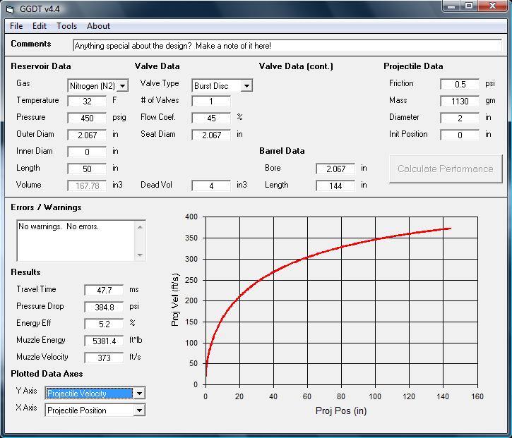 The pressure used was 470, not 450, the dead space is more like 10+ cubic inches, and the flow coefficient of a burst disk valve is at least 50, possibly 55.