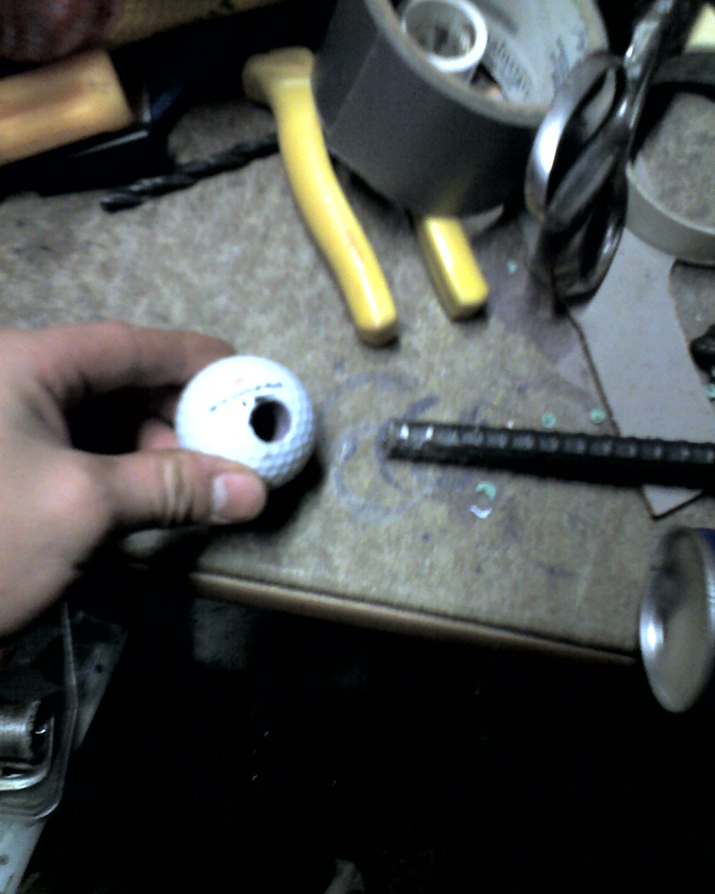 I simply drilled a hole in a golfball the size of my rebar and stick the rebar in.