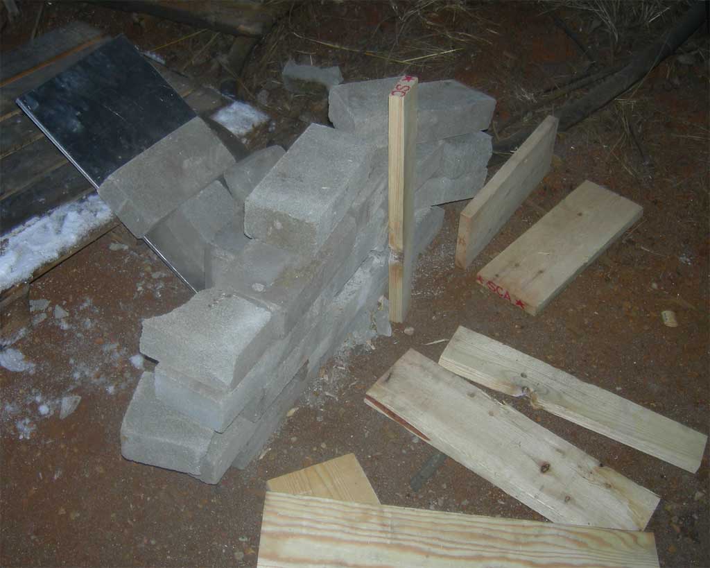 The projectile first went right threw a total of 60mm of wood, the continued threw the bricks and ricochet on a dumpster.