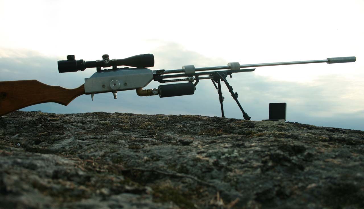This is The Challenger, my contribution to this contest. Built on a basic QEV concept, with a couple of add-ons. The parts are self-supporting with a steel frame made of square piping in the middle. A wood stock makes it comfortable to shoot with. The bi-pods are fold-able and the pipe can be detached to make it easy to move. It’s fairly lightweight considering the size of the gun. Shooting from standing position is possible even though I prefer to lie down.