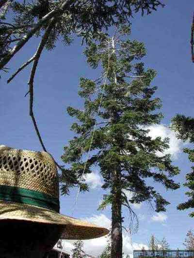 Because the above technique results in several seconds of "hang time" for the line, we often had to shoot several feet to one side of the tree in order to keep the wind from blowing the line clear of the tree.