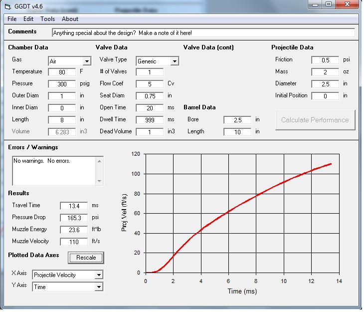 GGDT assumes that level of friction until the projectile starts to move. Once the projectile starts to move, the level of friction is cut in half and this new value is used the whole time the projectile is in the barrel.jackssmirkingrevenge wrote:This raises an interesting question, maybe D_Hall can weigh in on the matter - does GGDT assume this friction only until the projectile starts to move, or along the whole time the projectile is in the barrel? If it's the former case, it could be used to simulate the addition of a detent to the system...