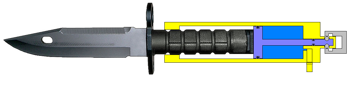 For a knife that's made to be shot I'd use thicker spring steel (at least 6, preferably 7 or 8mm) with higher grind angles and duller edges. Only the point needs to be particularly sharp. Temper it to only moderate hardness to prevent chips/cracks. I wouldn't bother with a good finish either, if you fire it, it's going to look like trash.jakethebeast wrote:thin and round you mean? just thinkign that the balde is going to be like 5mm thick from the thikest part so it would be pretty weak spot... our ballistick knife has m5 thread on the tang but i dont know if the powerfull penumatic version would hold it so well...
