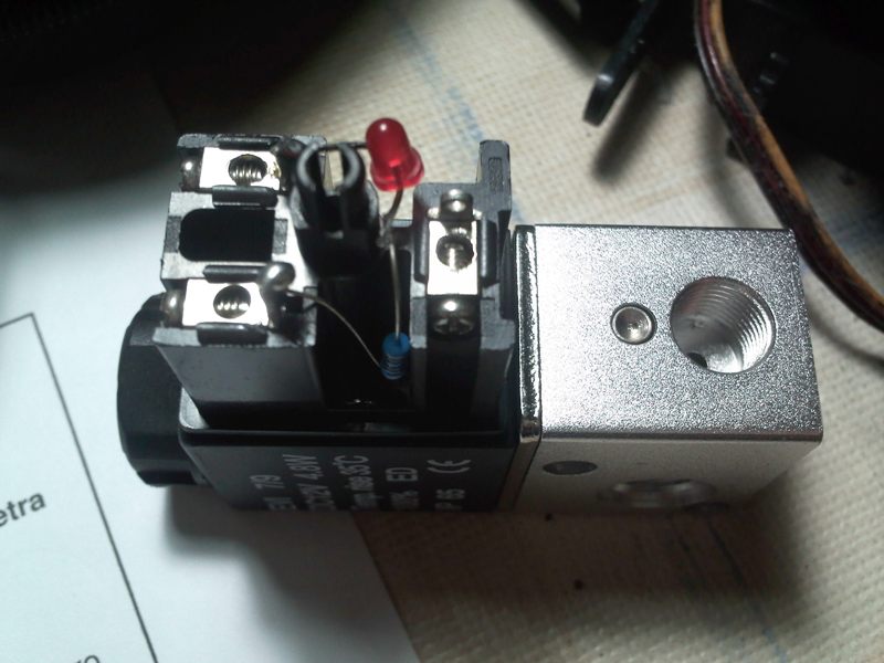 It´s not a normally closed valve, it leaks from the top normally if charged from the front port. When powered, air comes out from the side ports(both of them as they are connected). I could tap the top and use it as a superb lame solenoid valve with less than 1mm D orifice