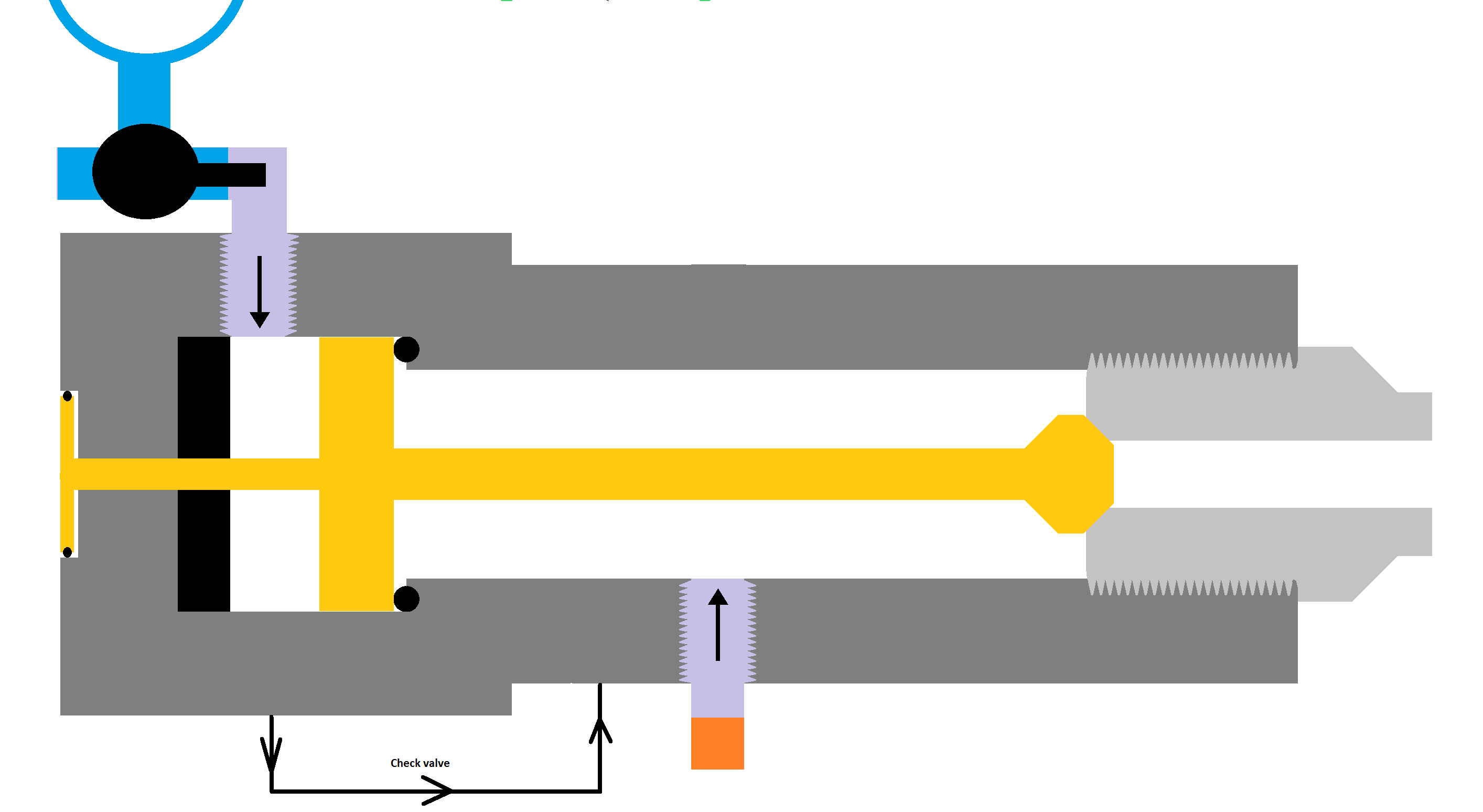 The sketch below is one idea I had a while ago, but if I was going to make one with a piston now I would have a similar kind of setup but with a much smaller piston in a separate cylinder, ontop of the chamber at the front, which is connected to a type of ball valve on the barrel opening. So in theory, once the pressure rises in the chamber, the piston will be forced forward, venting the rear of the cylinder allowing the piston to move the full stroke. Attached to this piston would be a conrod fitted to the valve handle.