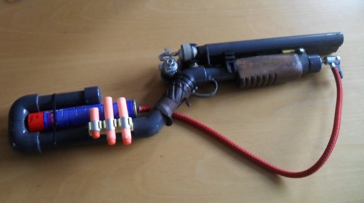 I'll be adding a safety pop-off tomorrow so my kid won't push it too far and I plan on putting a small pump inbetween the shoulderstock.