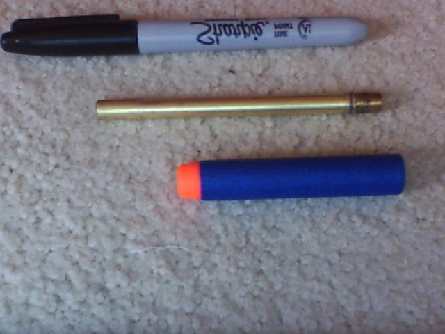 Hi everyone! I've been a lurker and might as well post something. :) This is a mini coax based on jor2daje's pengun. It has a solid rubber piston, 1/8 brass tubing for the barrel and 7/32 for the chamber. I don't have a shock pump, so it is crap at 160 psi. Btw it's my first build and I'm surprised that it actually works. :D