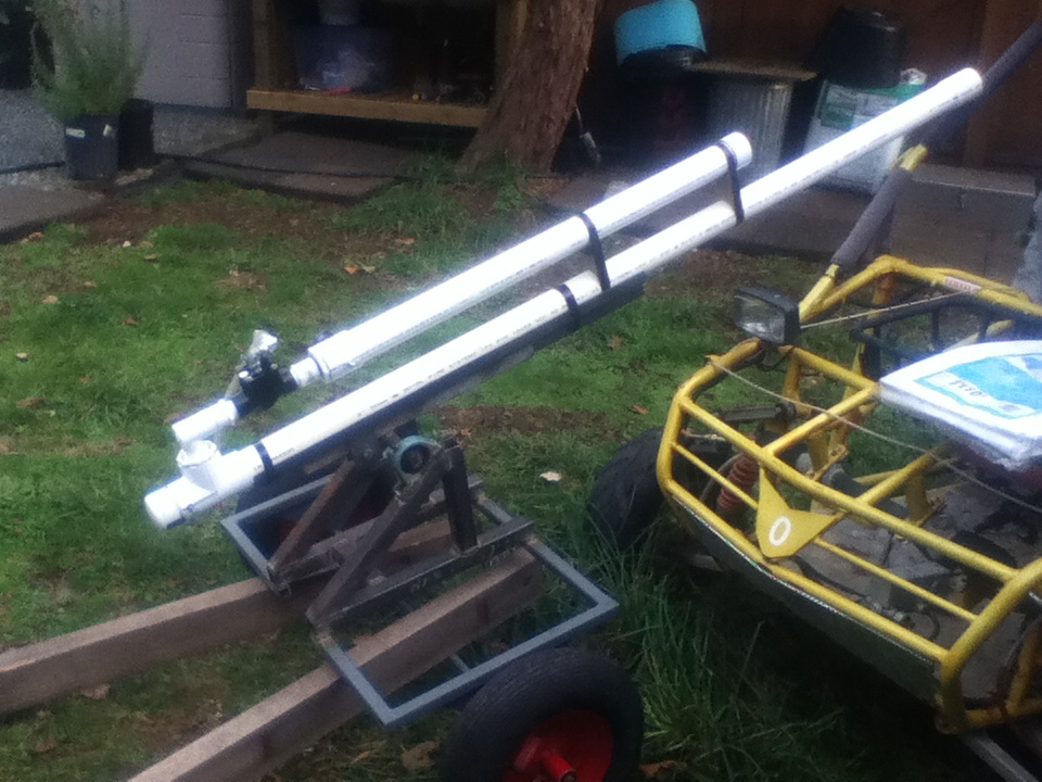 its comming. im headed to the dump tomorrow and il see if i cant find some bike gears and chain for a proper elevation adjustment. Unfortunately my 12v compressor went up in flames after repeated 150 psi shots, so im in the market for one of those too
